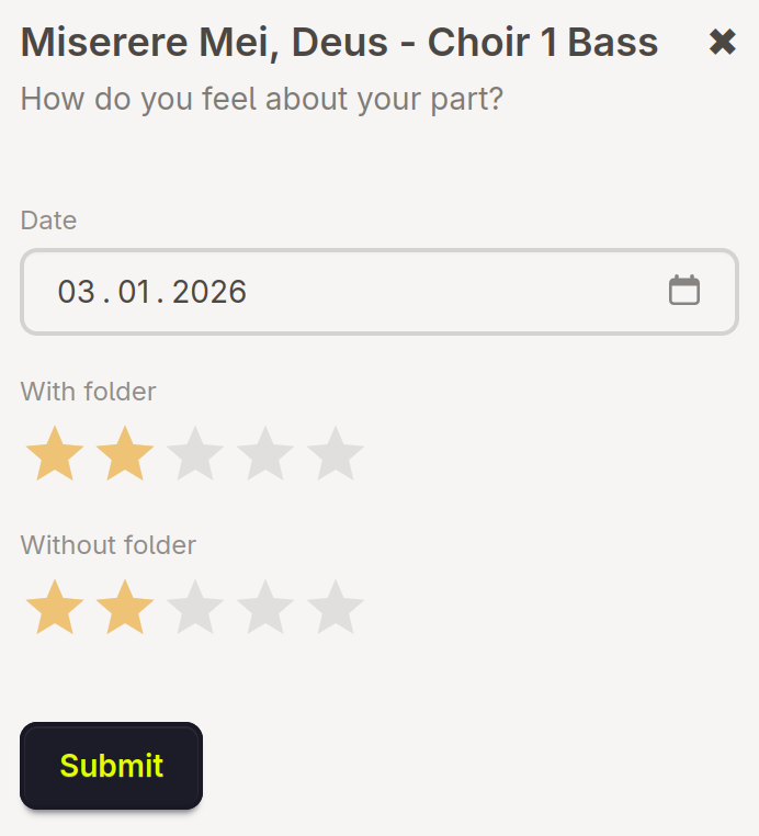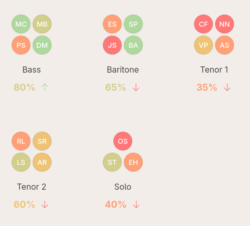 Learning trends are calculated on the member, part and choir level, giving you clear indicators what to focus on.